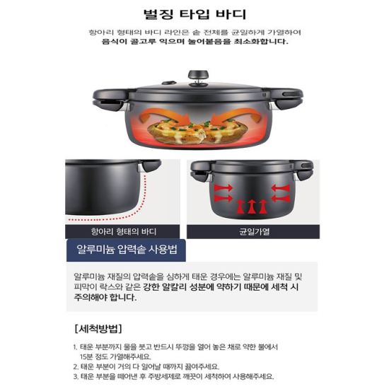 알루미늄 압력솥 경우 밀폐되어 있다가 고객님께서 개폐를 하시면
