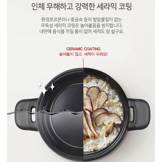 냄비 내?외면은 코팅이 적용돼 음식이 눌어붙거나 양념이 잘 묻어나지 않아 세척이 편리하다.