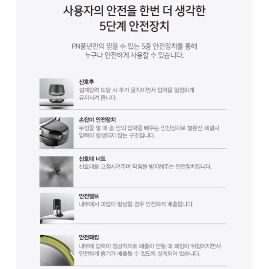 유일하게 안전밸브가 스텐으로 되어 있는 압력솥은
