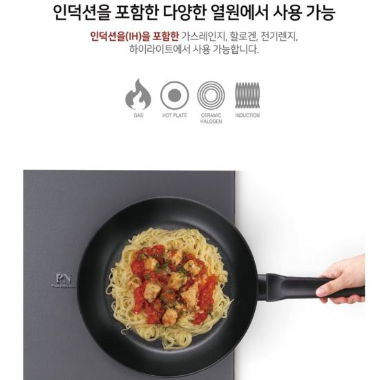 인덕션및 모든 열원에서 가능하며 손잡이는 손목에 무리가 가지 않게 만들어져 아주 편리합니다.