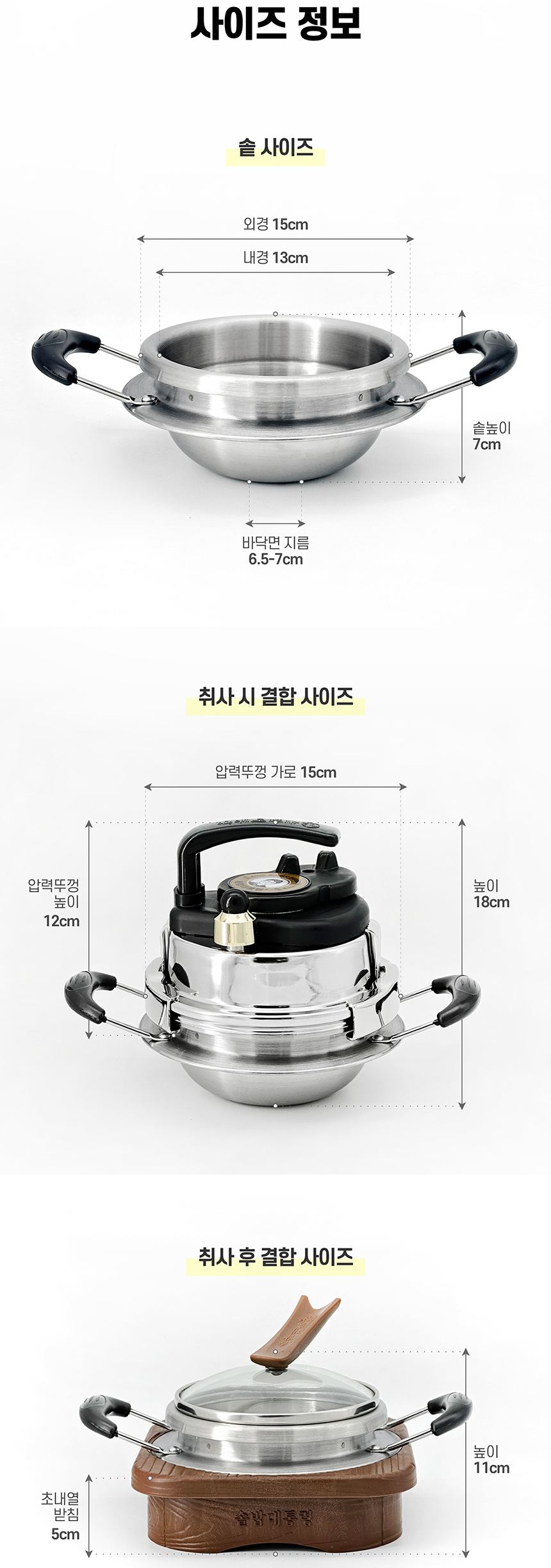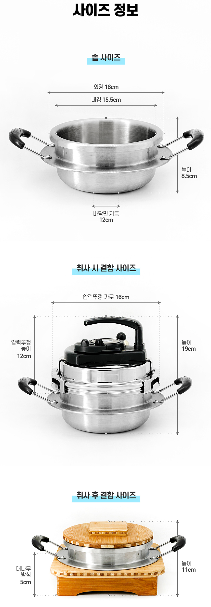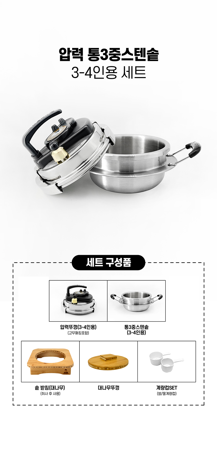 솥밥대통령 가정용 솥세트 (1-2인) 국내제작 가마솥 압력솥 스텐솥 밥솥 누룽지솥