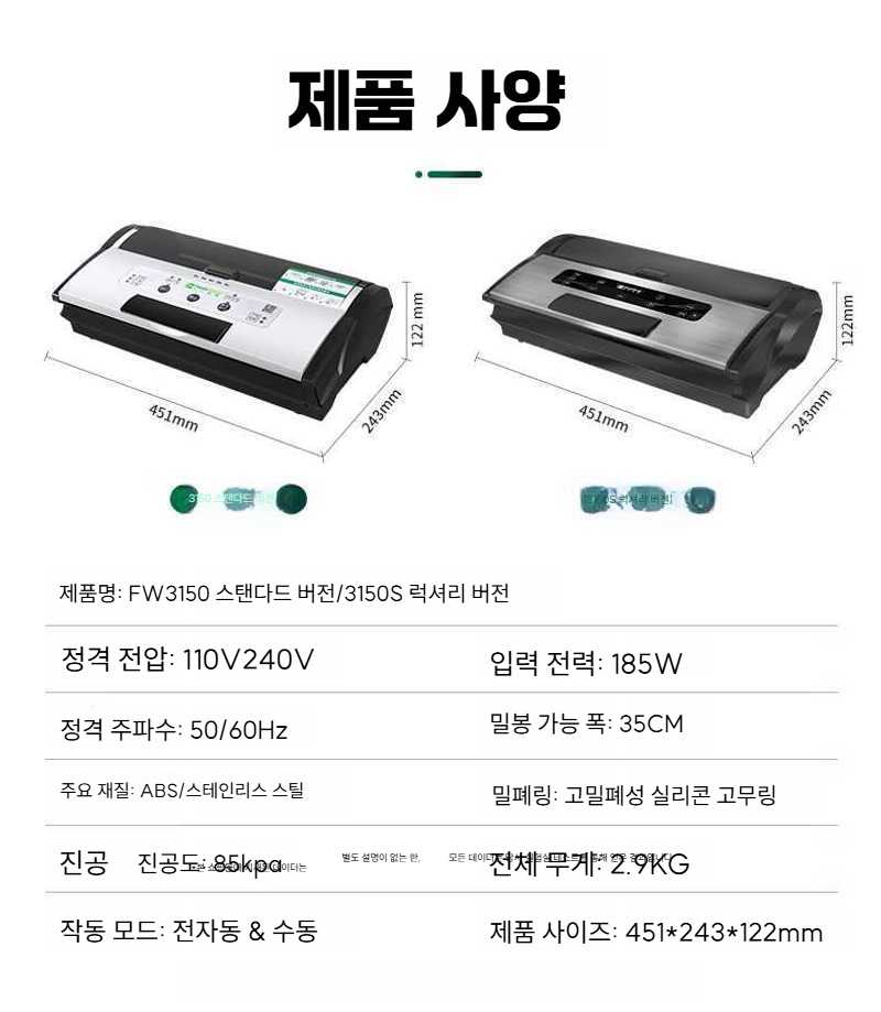 수비드 진공포장기 탁상형 35cm 밀봉 폭 FW-3150 자동