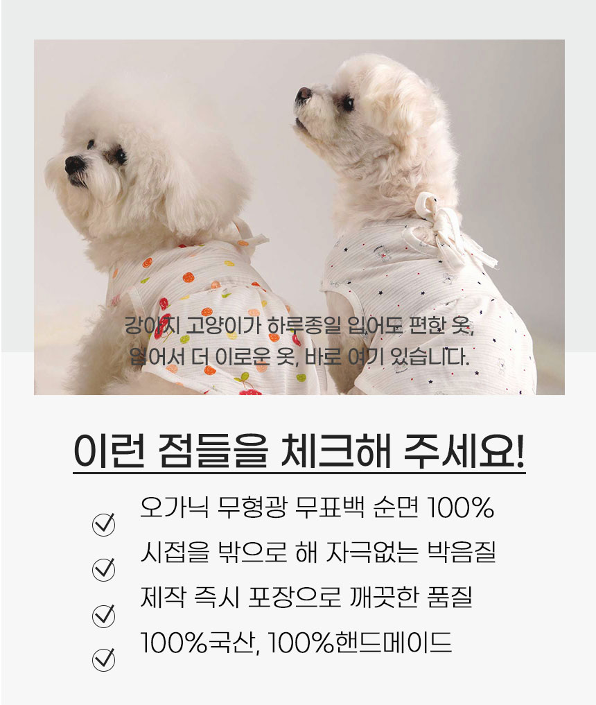 강아지옷 오가닉 순면 반팔조끼 3+1 구매시 옷 증정 이벤트