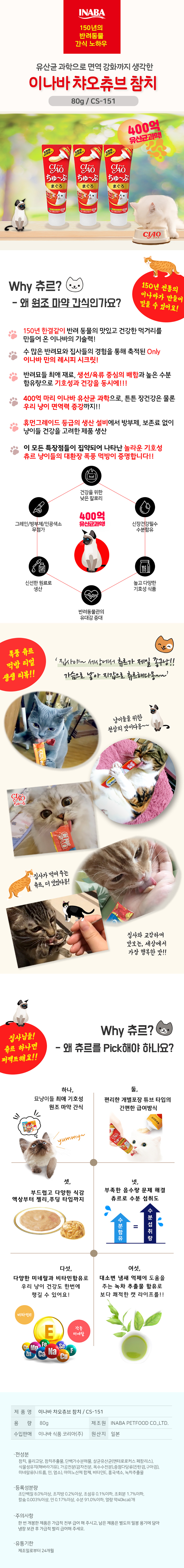(현대Hmall)이나바 CS-151 CIAO 츄브 참치 80g x 12개 묶음