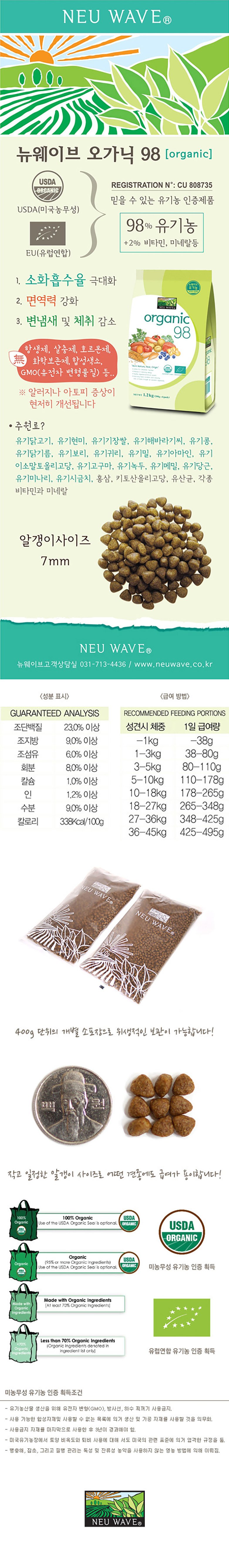 뉴웨이브 오가닉 유기농 98% 강아지사료 4kg