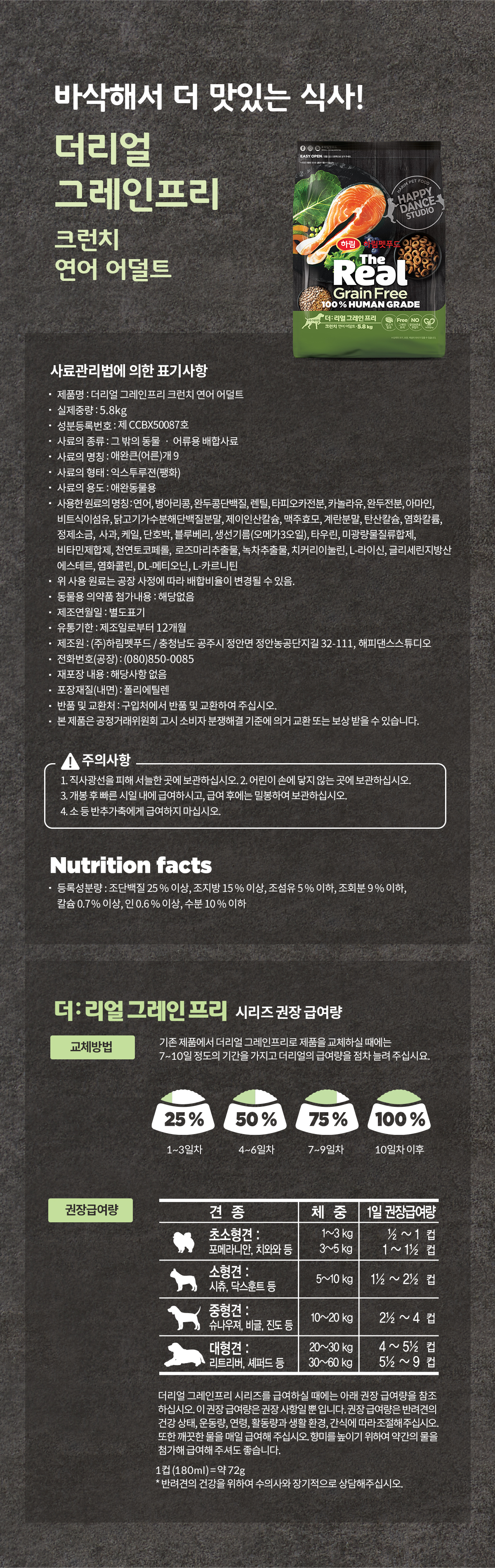 더리얼 그레인프리 크런치 연어 어덜트 5.8kg / 강아지 대용량 사료 / (소포장없음
