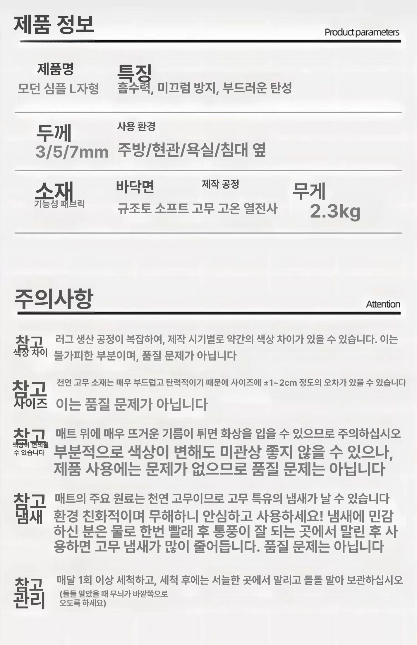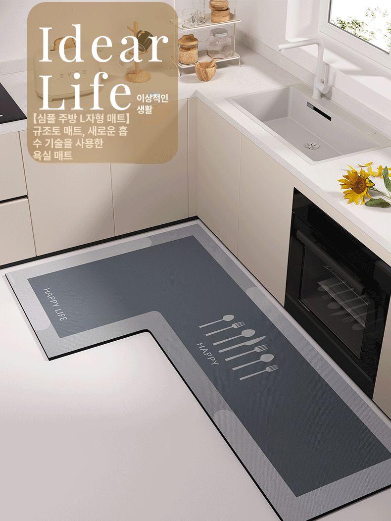 L형 주방 전용 흡수 매트 미끄럼 방지 욕실발매트 주방발매트 싱크대매트 부엌매트
