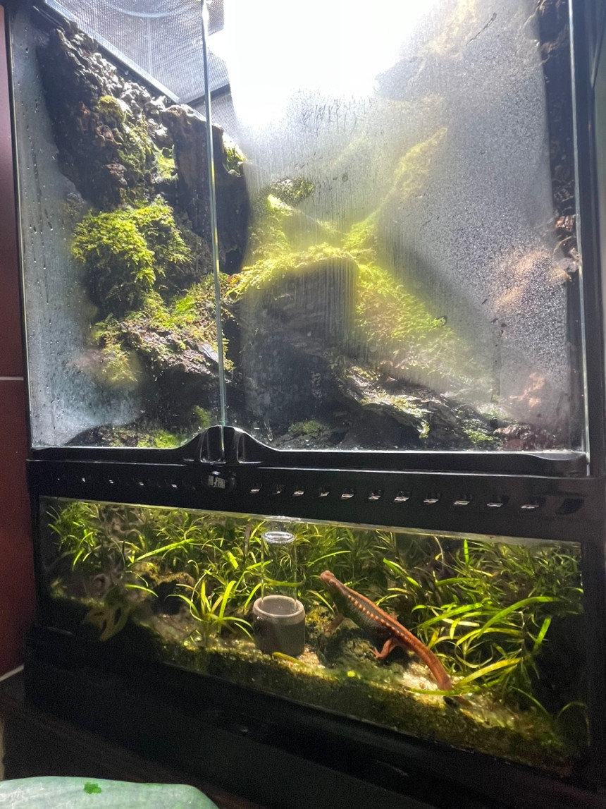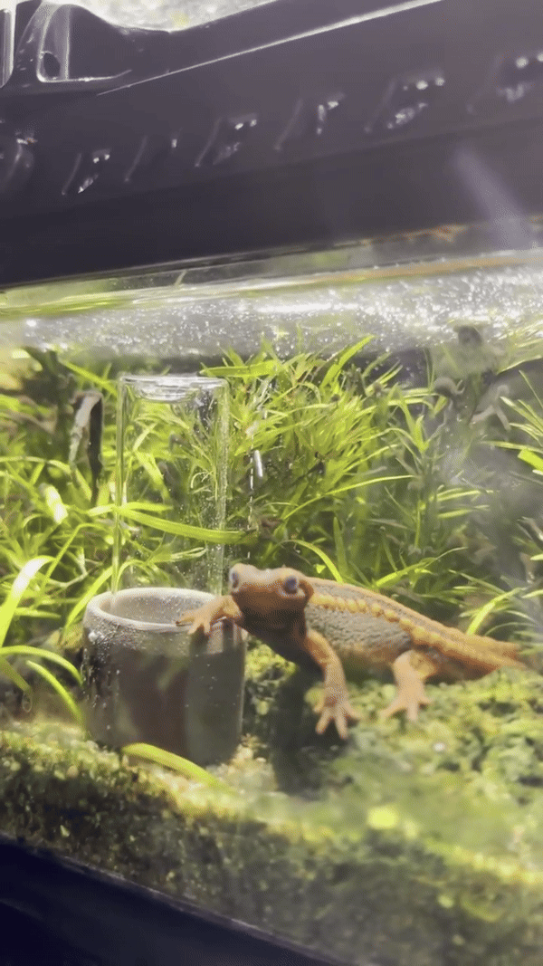 <산소발생기에 딱 붙어있는 도롱뇽>