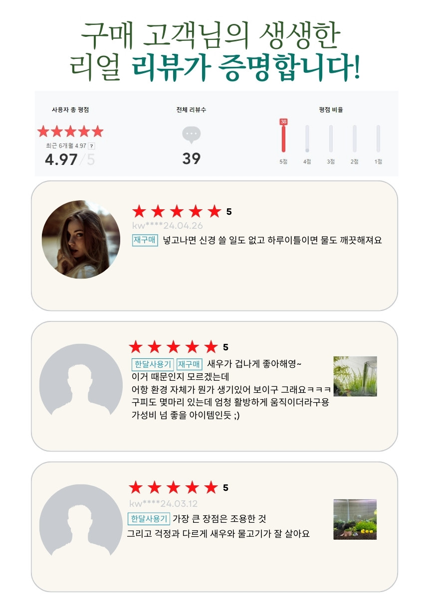 물고기와 수초 모두에게 최적의 환경을 제공한다는 점이에요