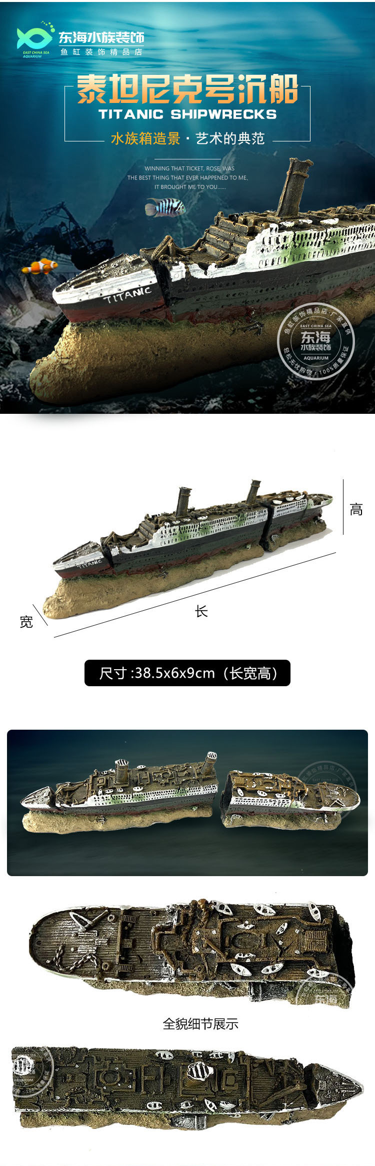 부서진 난파선 수족관 소품 자동차 타이타닉 피규어 군함 용품 수중 조경 소형