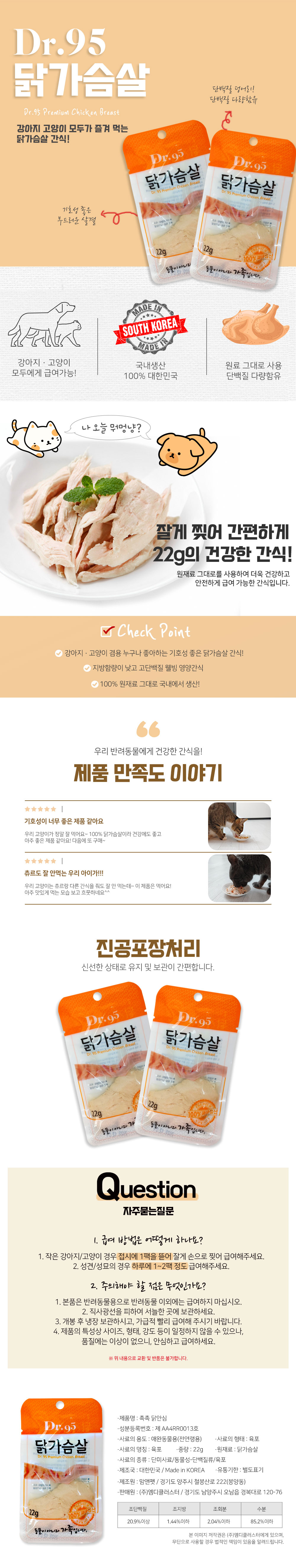 Dr.95 국산 순닭가슴살 반려동물 영양간식 22gX50개