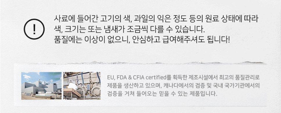 인공착색료 등의 부산물을 일체 첨가하지 않고, 자연 그대로의 원료를 사용합니다.