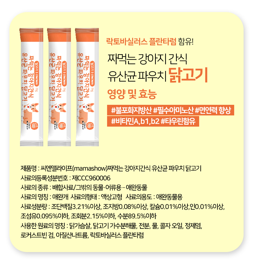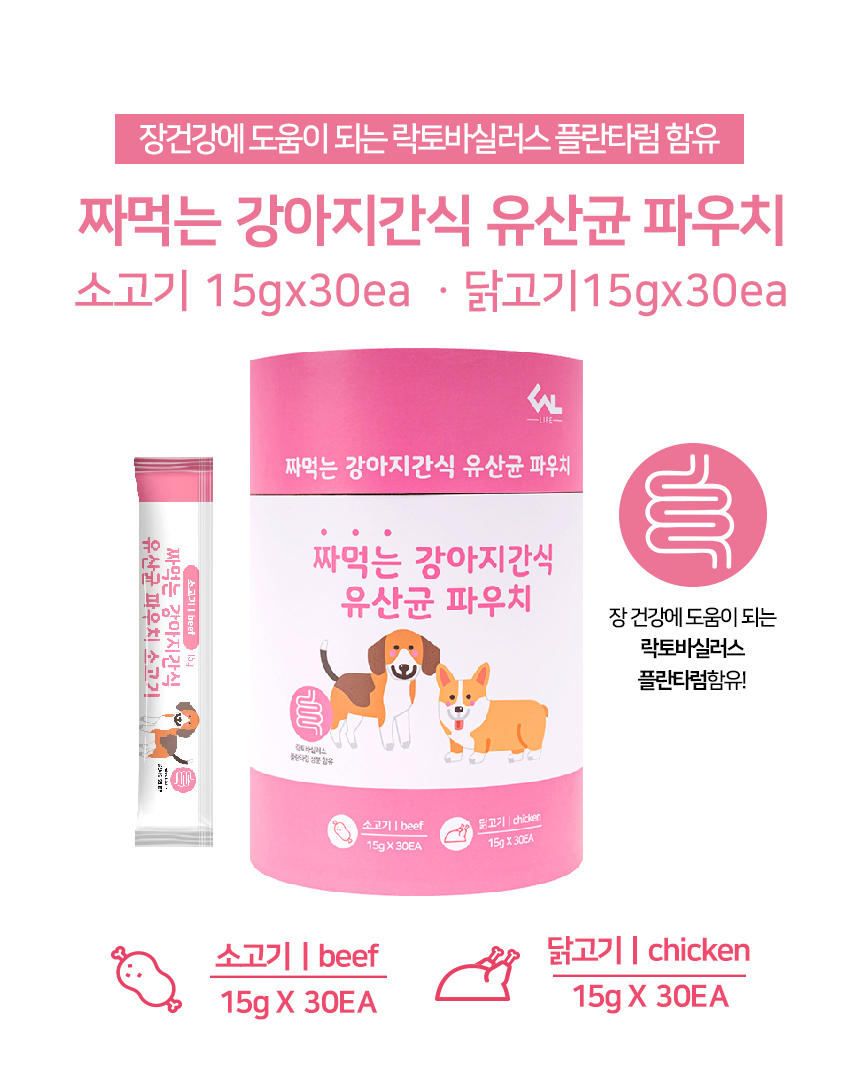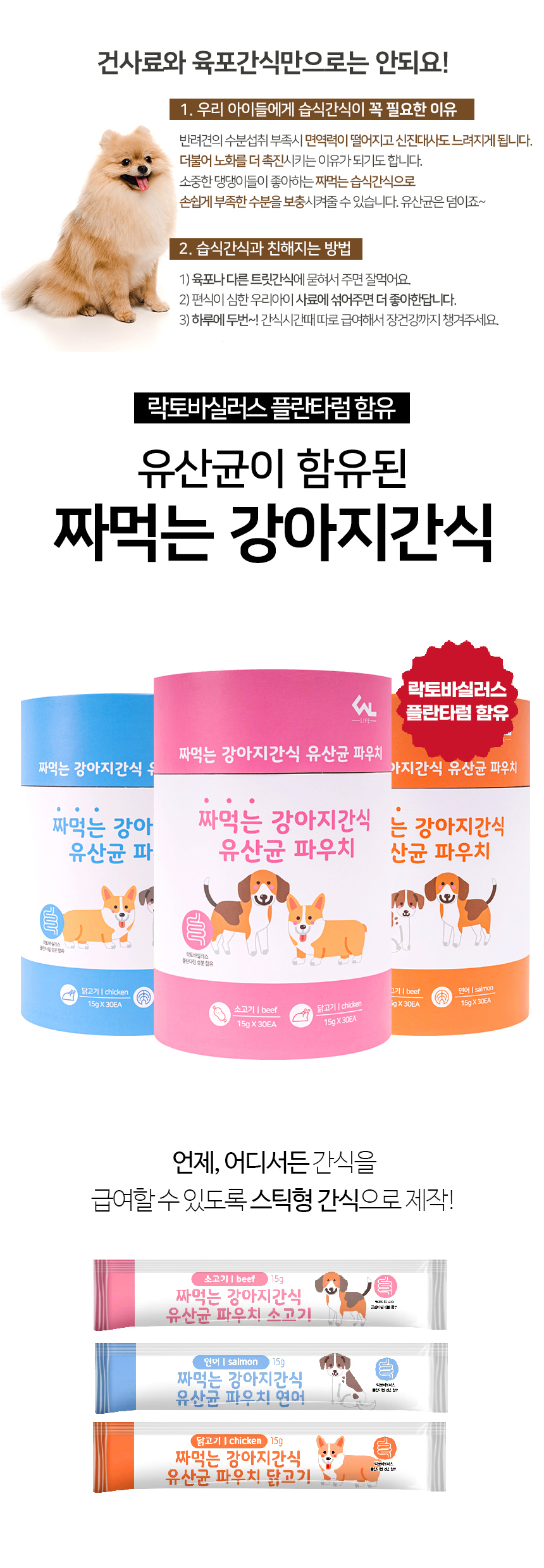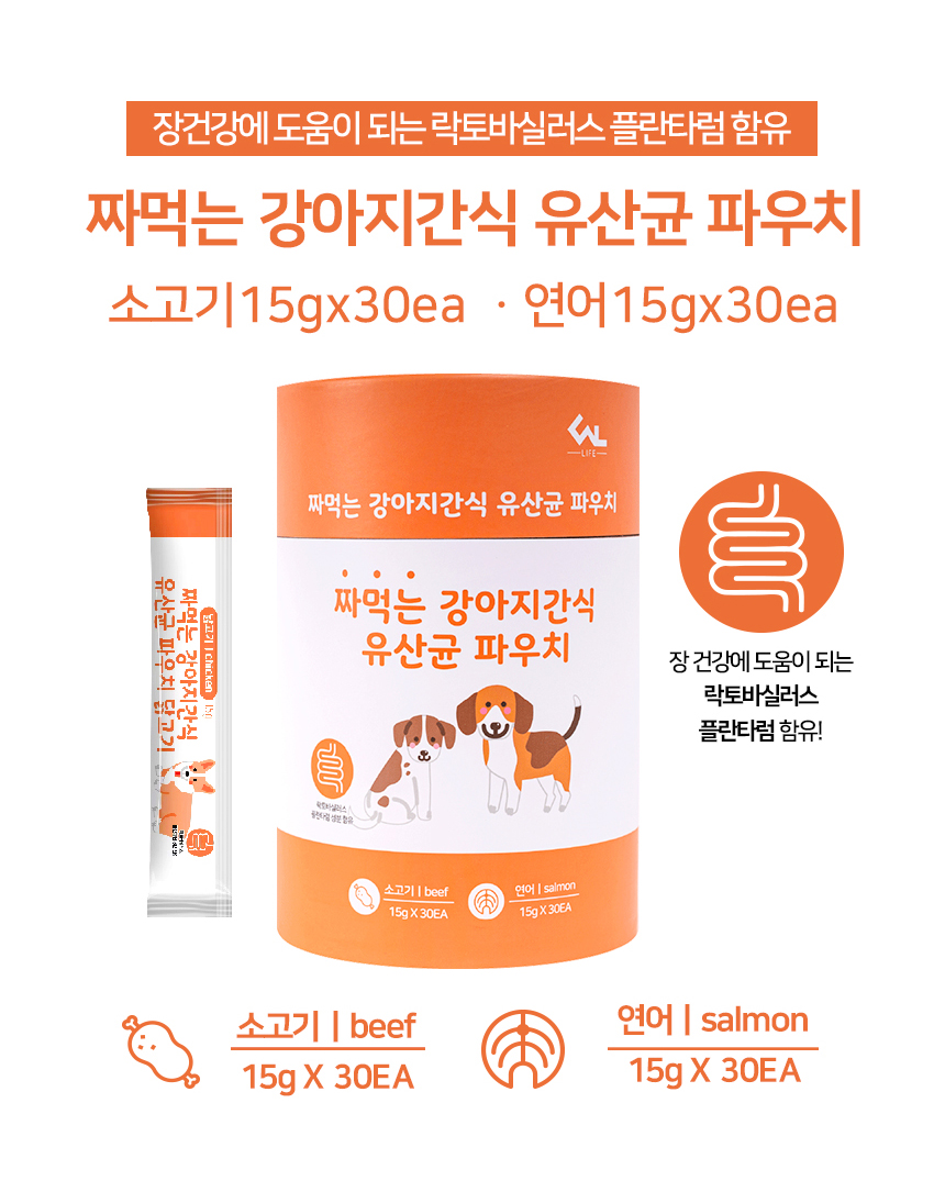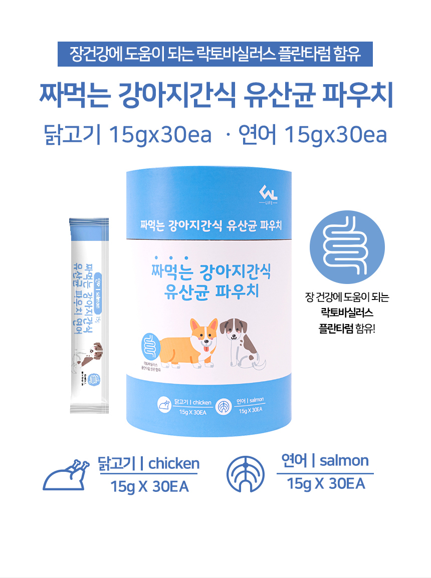 씨엔앨라이프 짜먹는 강아지간식 유산균 파우치 15g 닭고기 30p + 연어 30p
