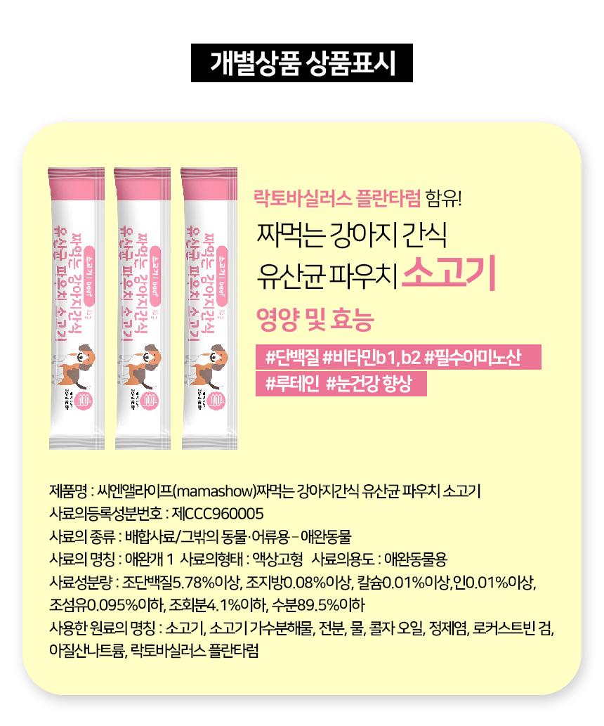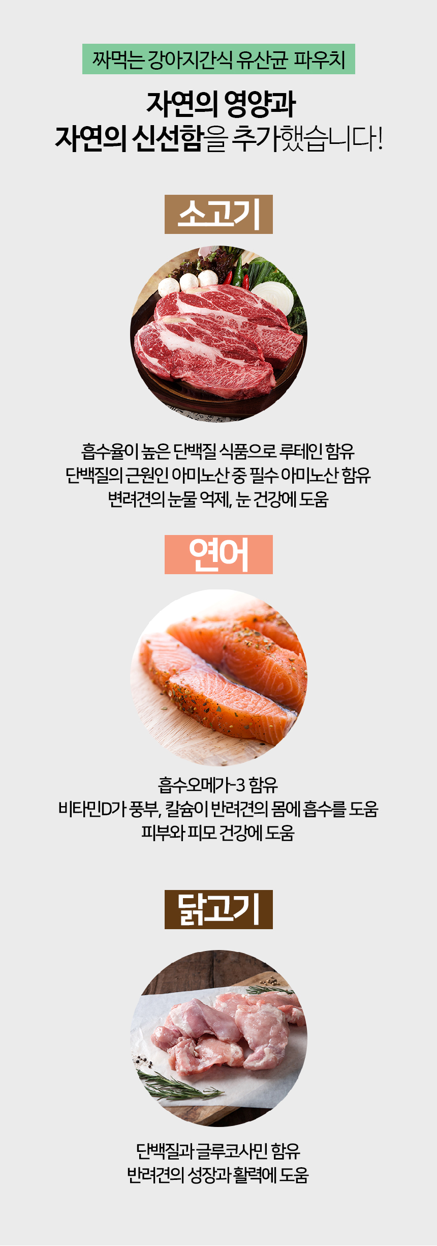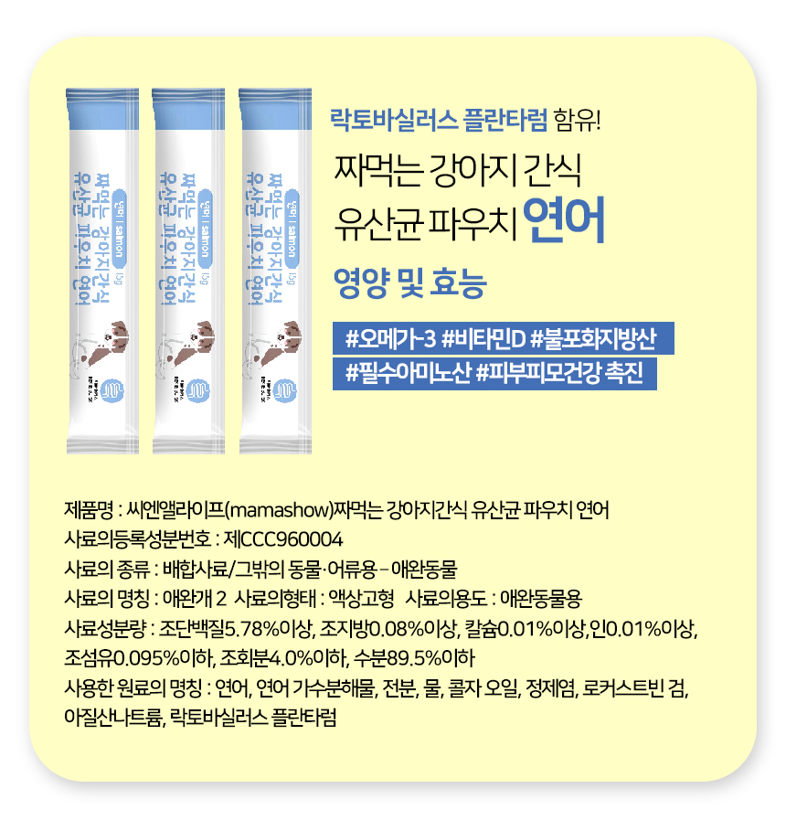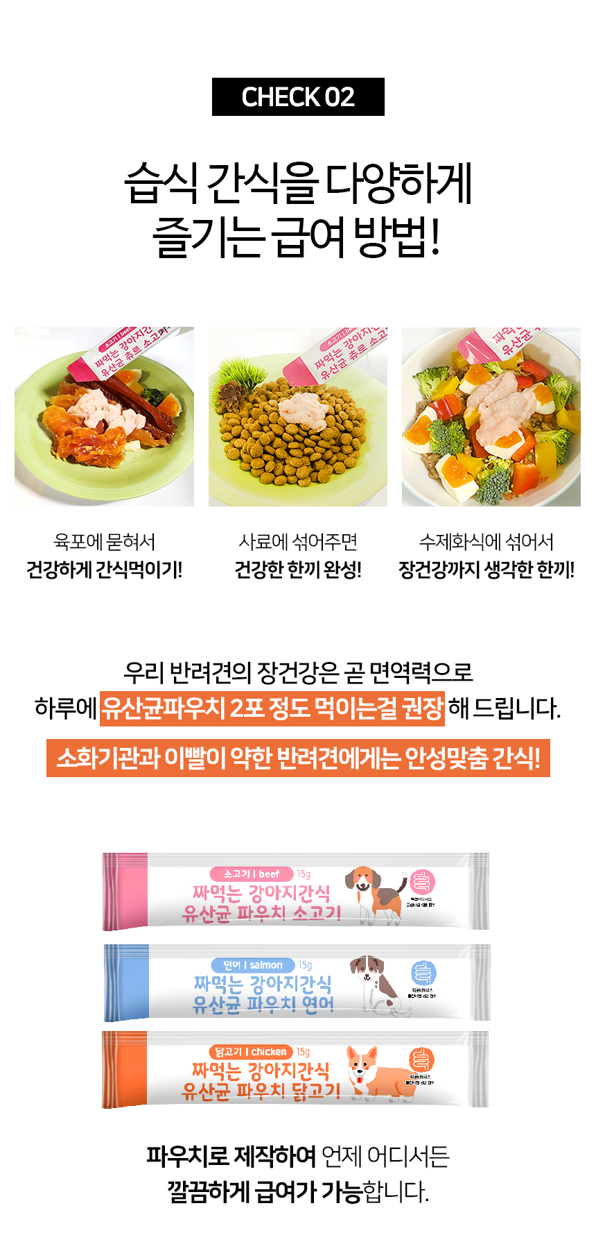 씨엔앨라이프 짜먹는 강아지간식 유산균 파우치 15g 닭고기 30p + 연어 30p