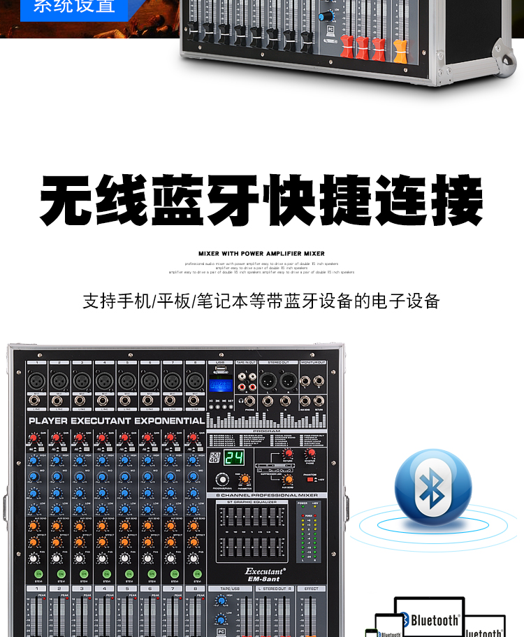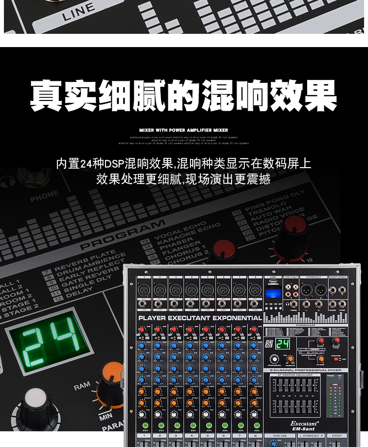 8路??道通道?入,采用低??,高精度的?克?前置放大器,音色????
