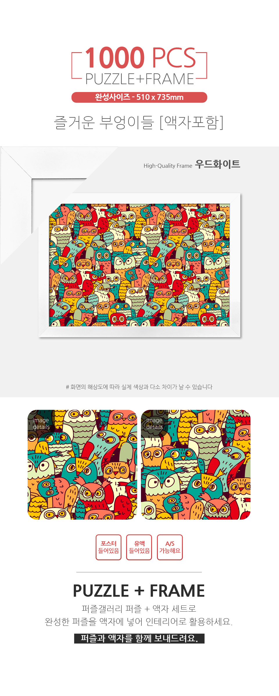1000피스퍼즐 즐거운 부엉이들+우드화이트 액자세트
