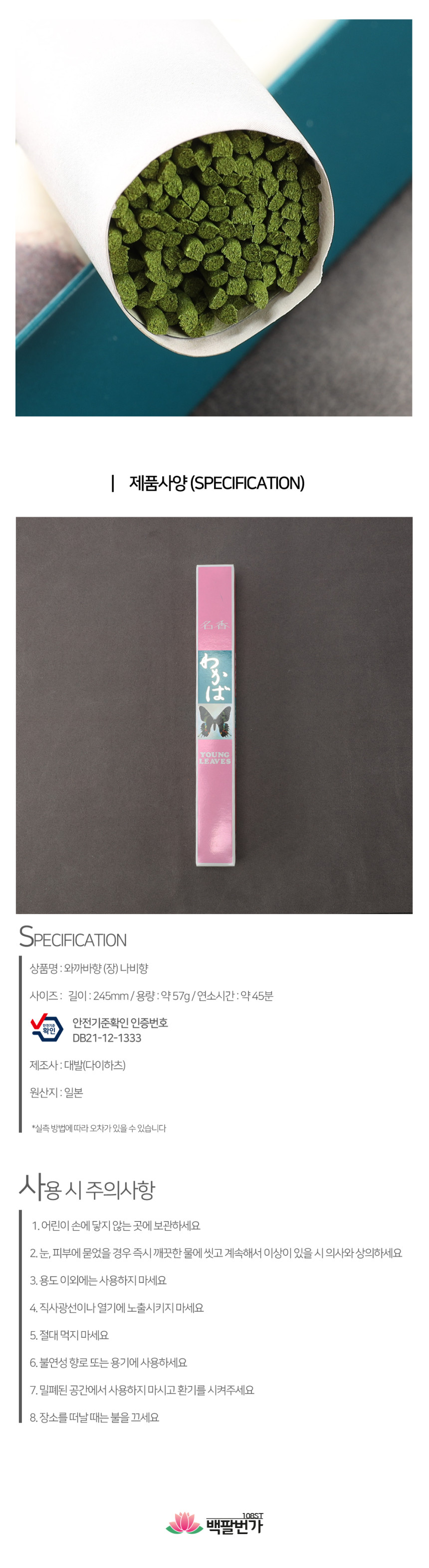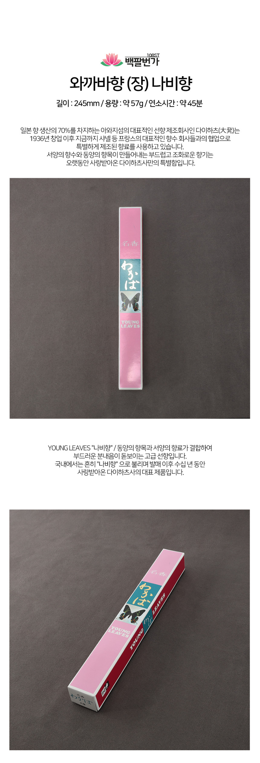 와까바향 (장) 나비향 인센스 스틱 선향 일본향 미연향 연기적은향