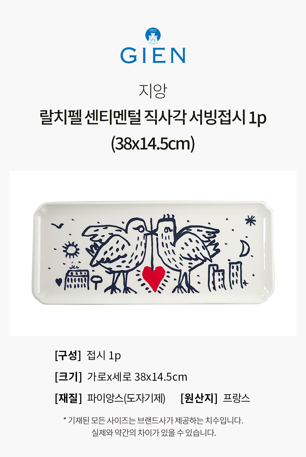 (대구신세계)지앙 랄치펠 센티멘털 직사각 서빙접시 1p (38x14.5cm)
