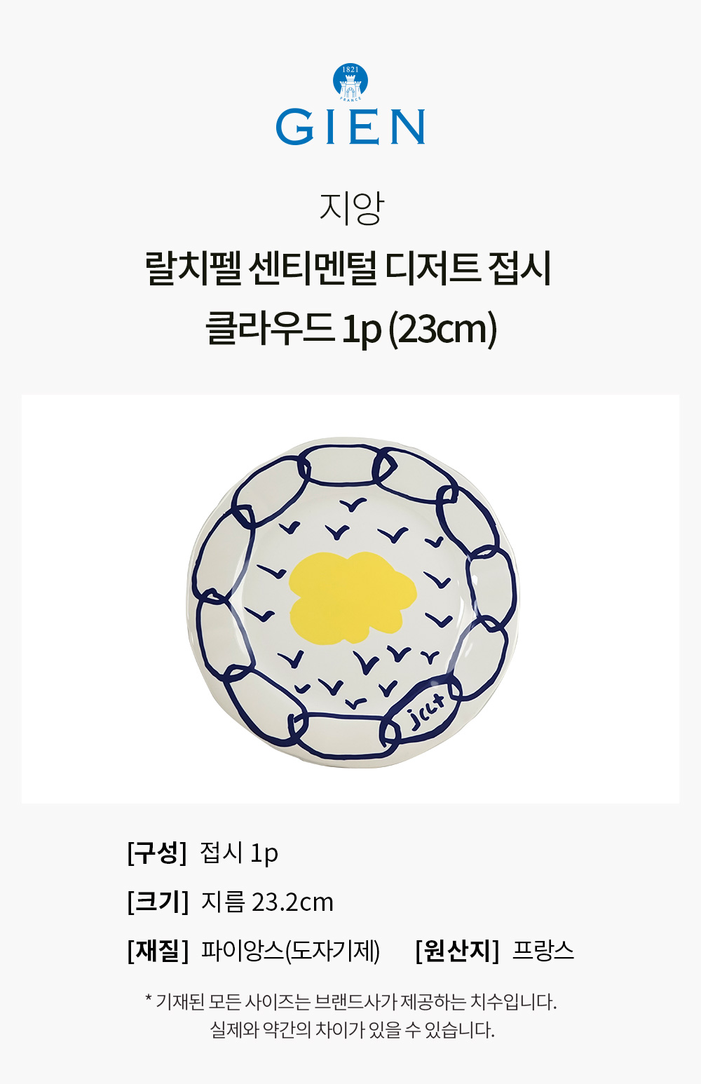 (대구신세계)지앙 랄치펠 센티멘털 디저트 접시 클라우드 1p (23cm)