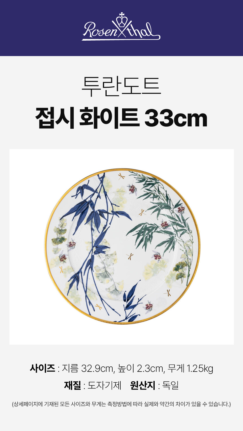 (대전신세계)로젠탈 투란도트 원형 접시 33cm 화이트