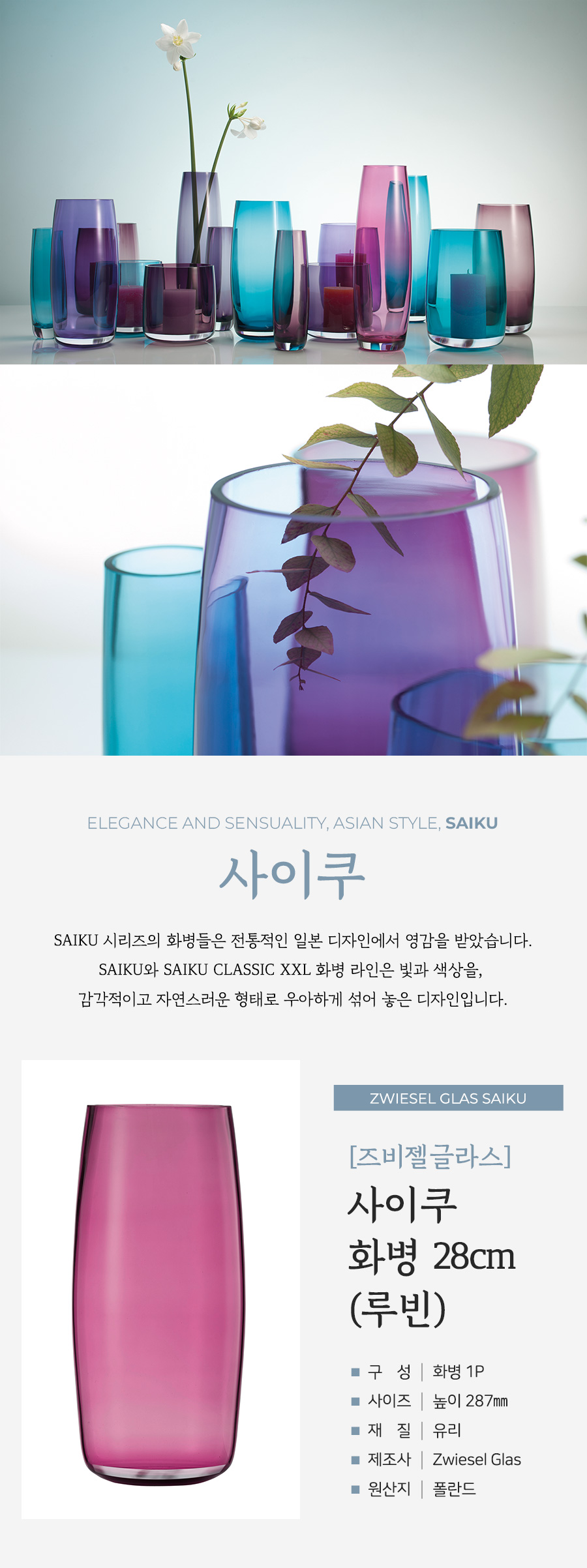 (신세계센텀점)즈비젤글라스 사이쿠 화병 28cm (루빈) 1p