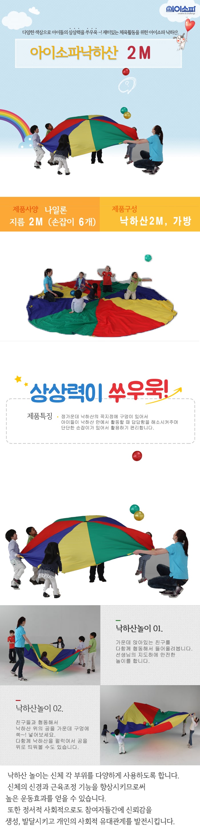 일월천상회 아이소파 낙하산 2M 실내스포츠 유아체육기구 유아체육용품 유아체육활동도구