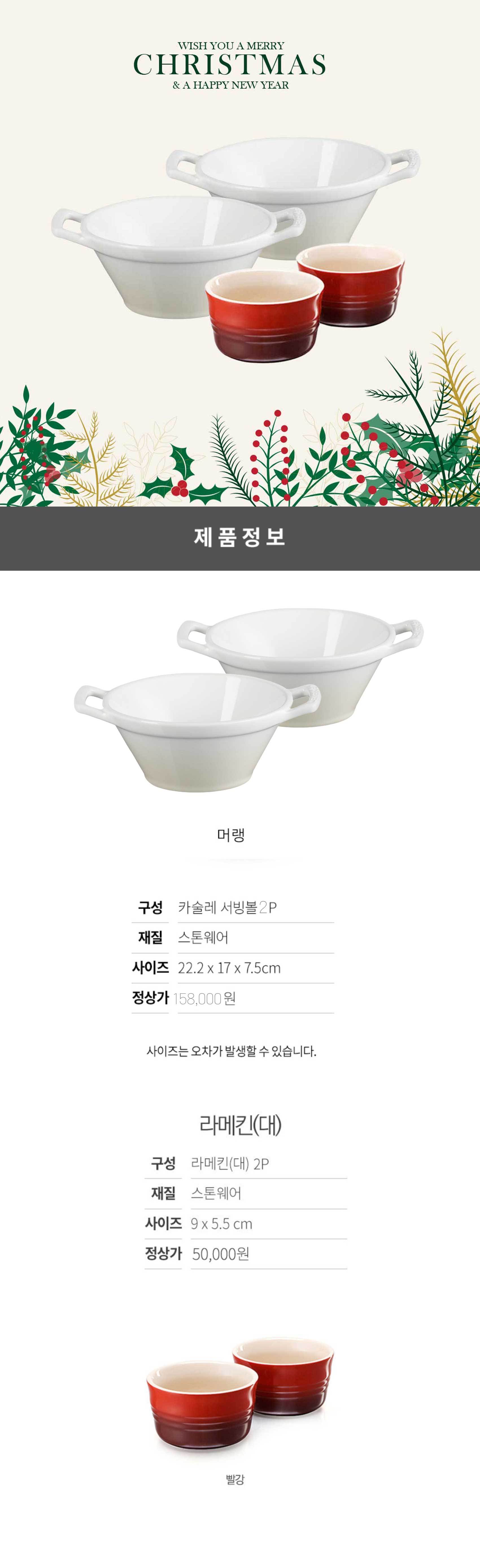 카술레서빙볼 머랭 2P + 라메킨(대) 빨강 2P 총 4P로 구성 된 세트 상품입니다.
