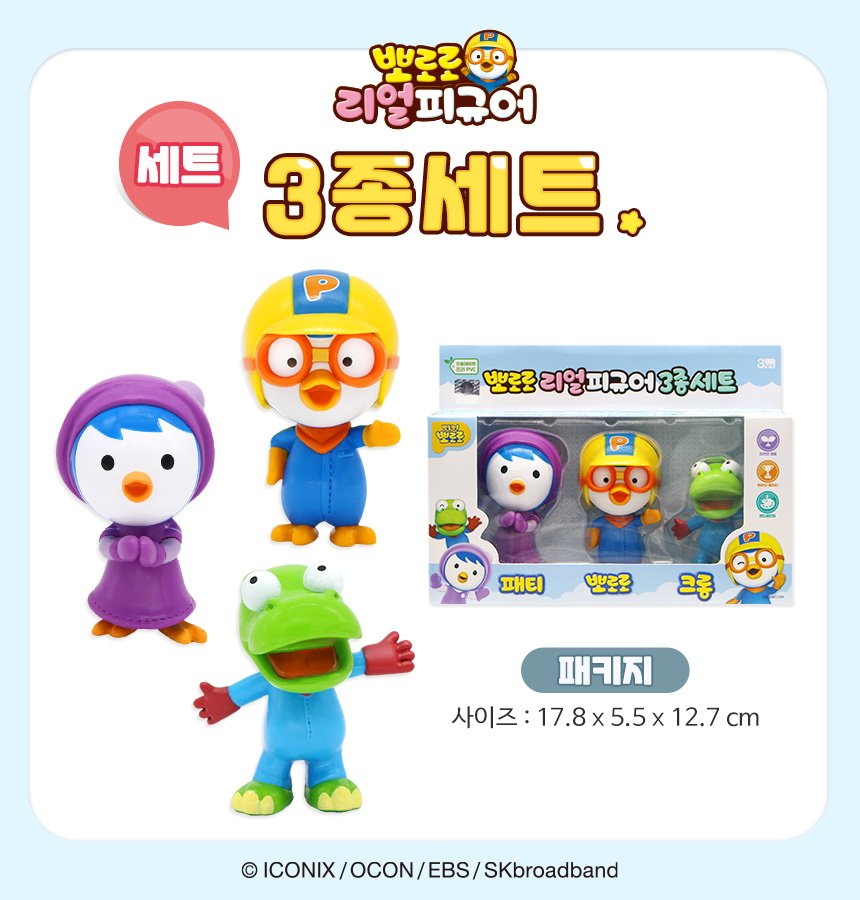 뽀로로와 친구들 리얼 피규어 3종세트(서있는 뽀로로 패티 크롱)