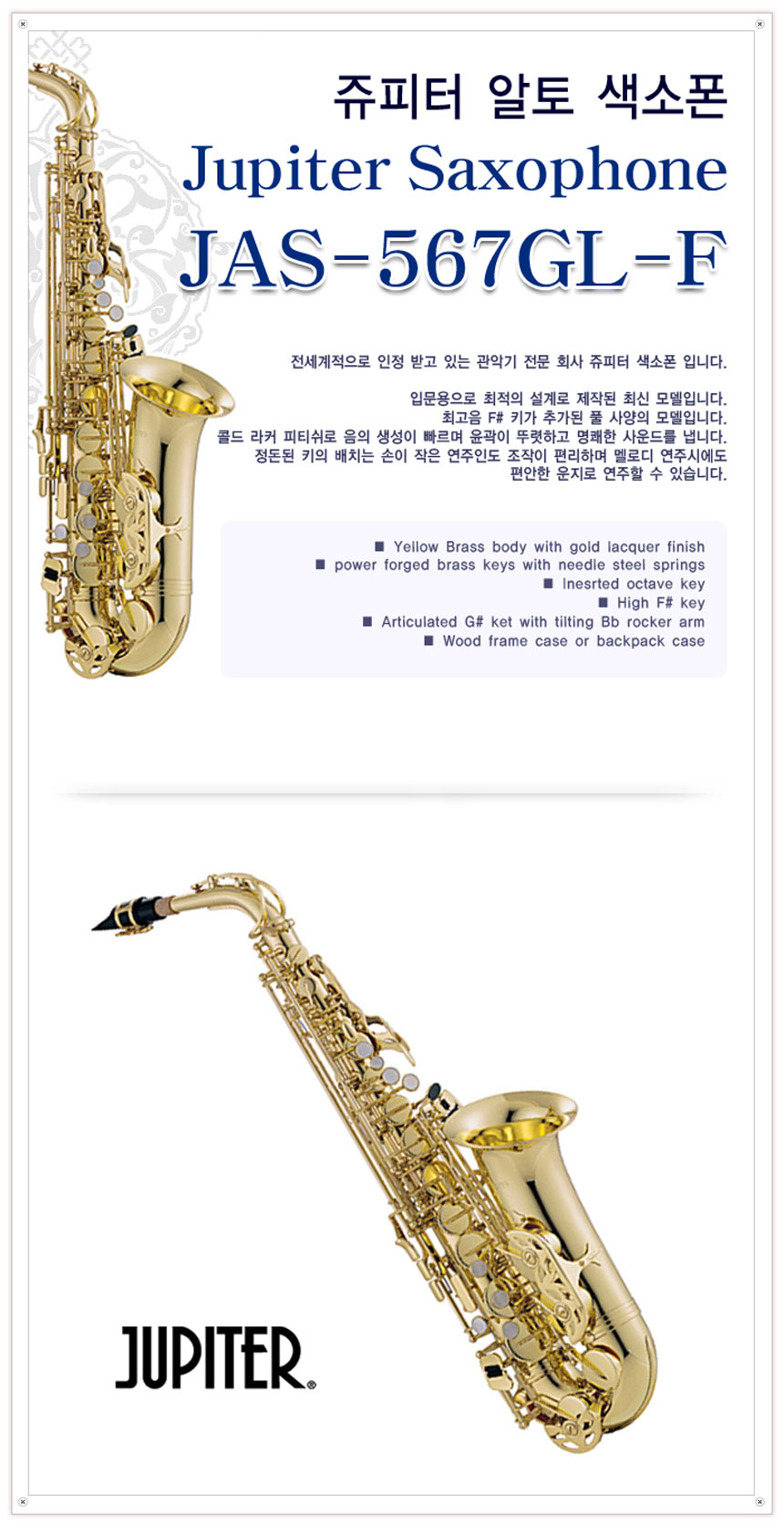 (현대Hmall)쥬피터알토색소폰 Jupiter Alto Saxophone JAS-567GL-F / JAS567GLF 주피터섹소폰 + 풀