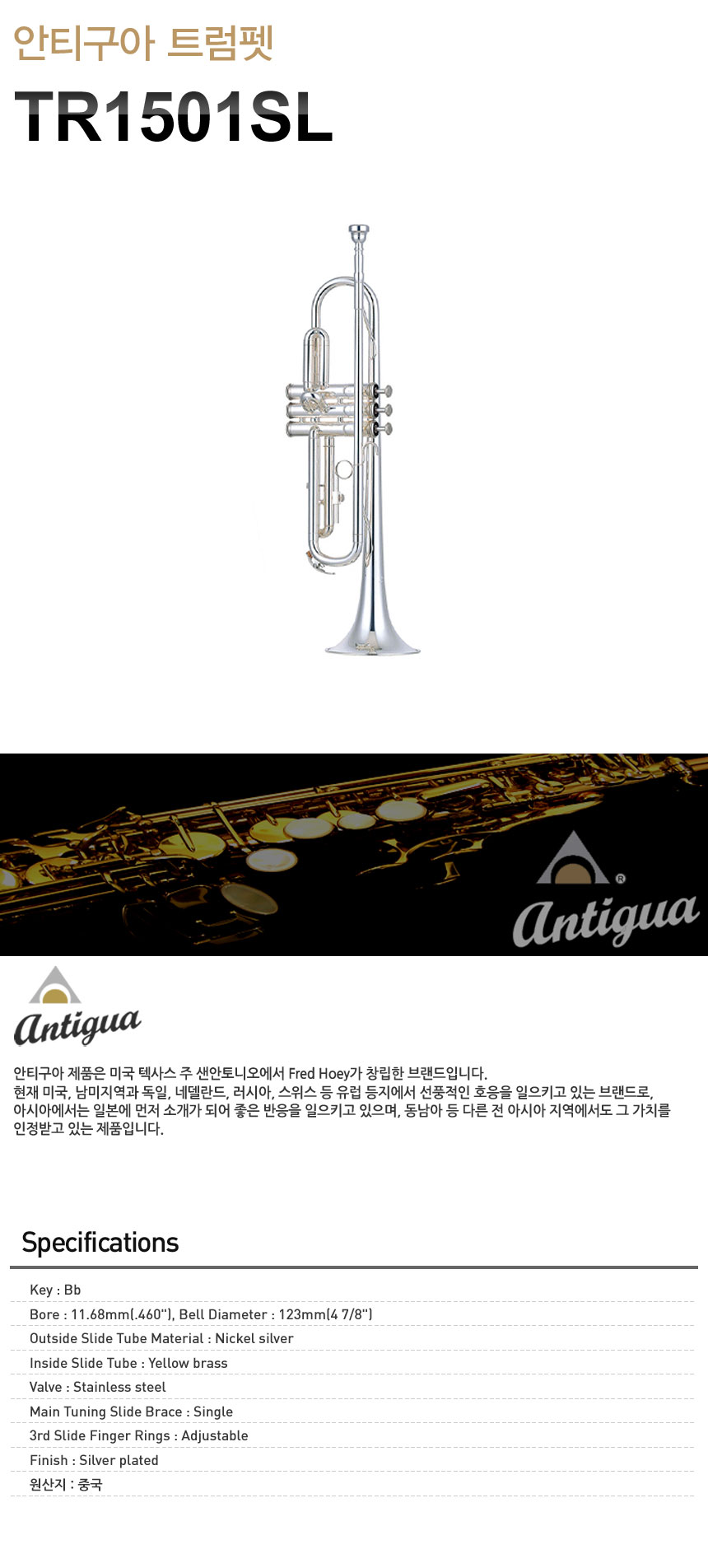 (현대Hmall)안티구아 TR1501SL 트럼펫 /Antigua Trumpet/실버 금관악기/교육용/연습용 + 풀옵션