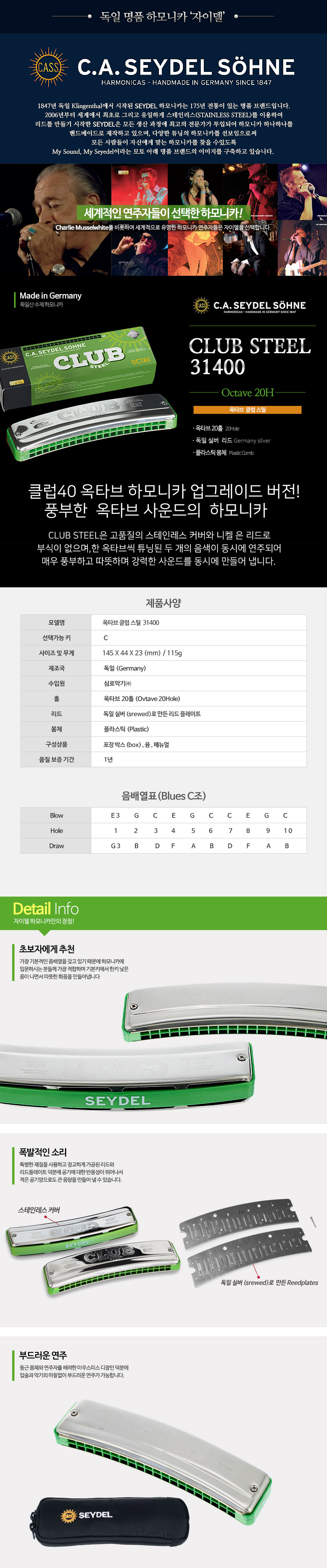(현대Hmall)자이델 Octav Club Steel (31400) 하모니카 /SEYDEL Harmonica/20홀/옥타브 클럽 스틸/독