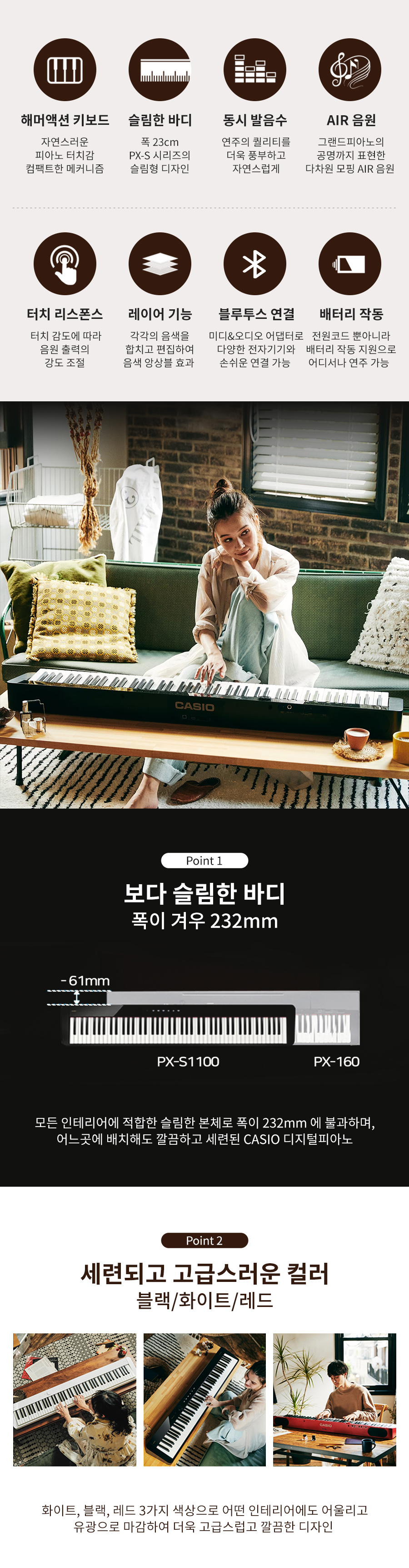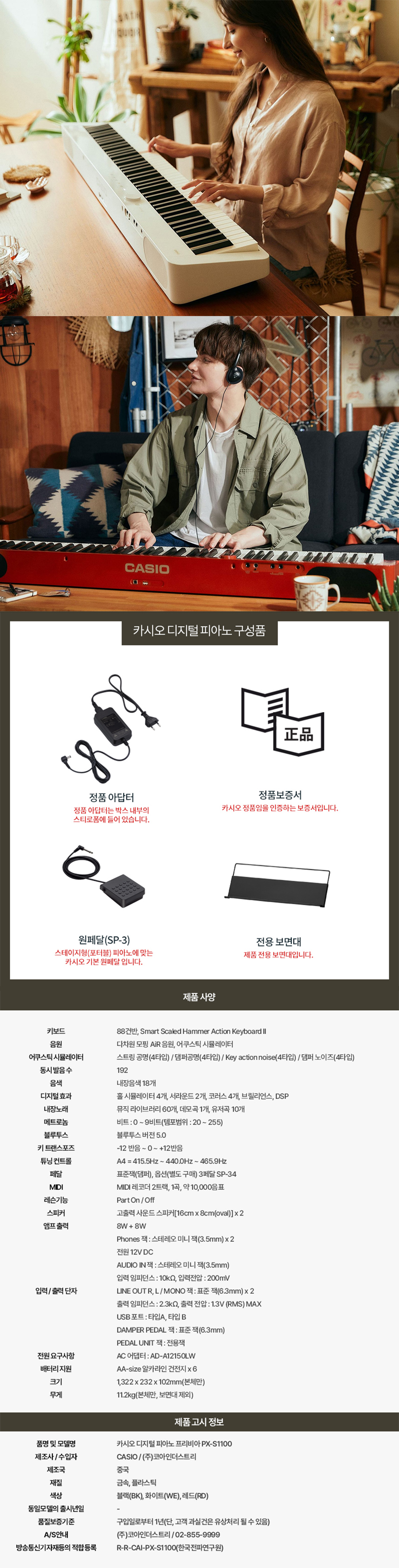(현대Hmall)카시오 PX-S1100 전자 디지털피아노 프리비아 스마트 PXS1100