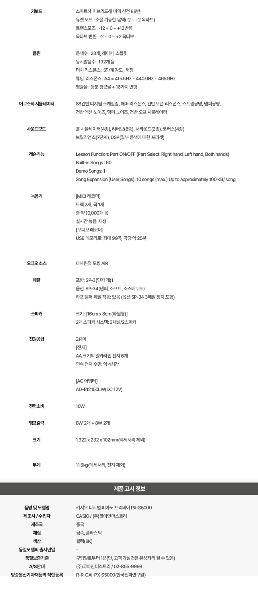 (현대Hmall)카시오 PX-S5000 전자 디지털피아노 프리비아 스마트 PXS5000