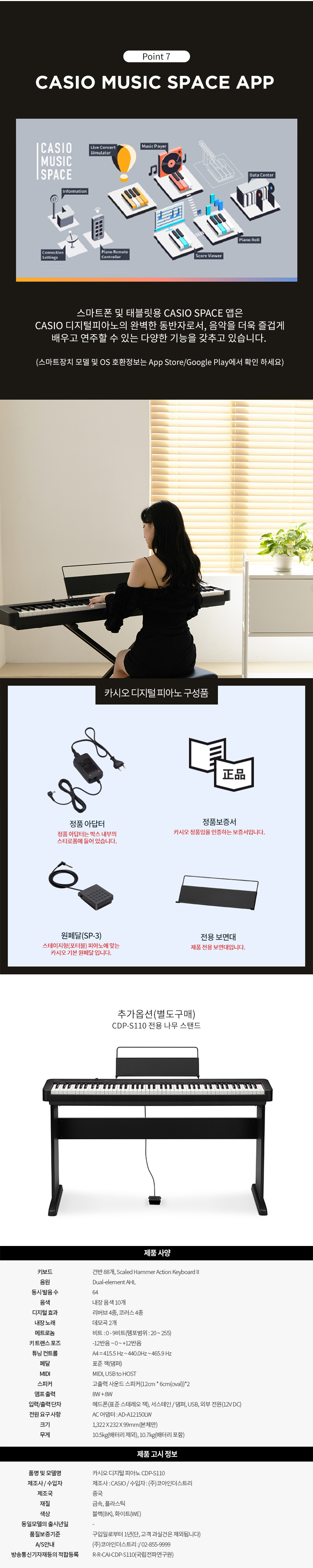 (현대Hmall)카시오 CDP-S110 전자 디지털피아노 88해머건반 슬림형 CDPS110