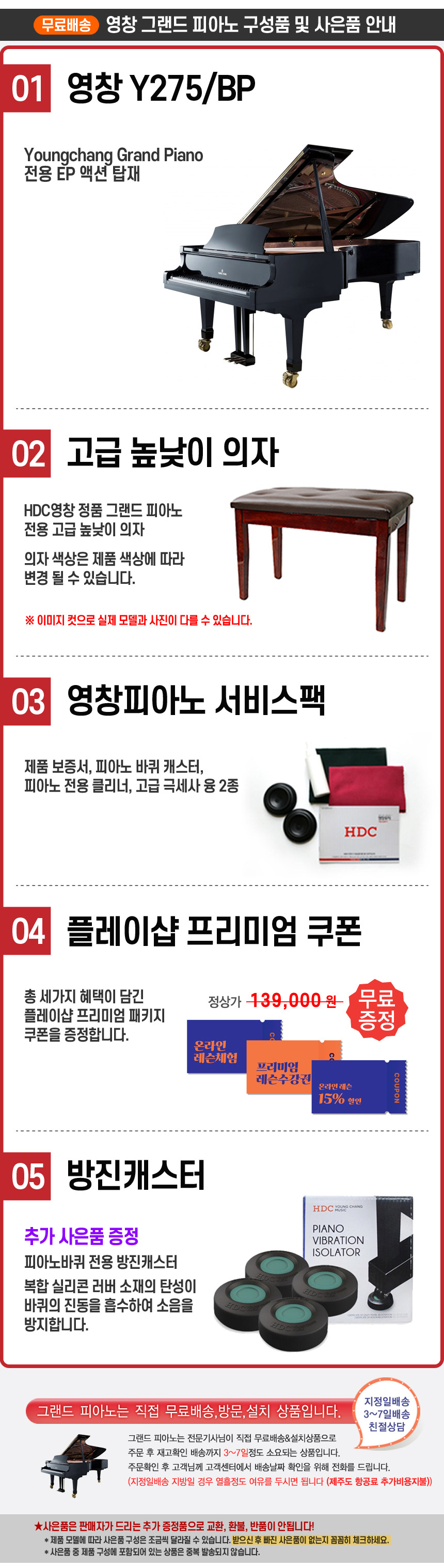 (현대Hmall)영창그랜드피아노 Youngchang Grand Piano Y275 BP /블랙유광/EP 액션탑재