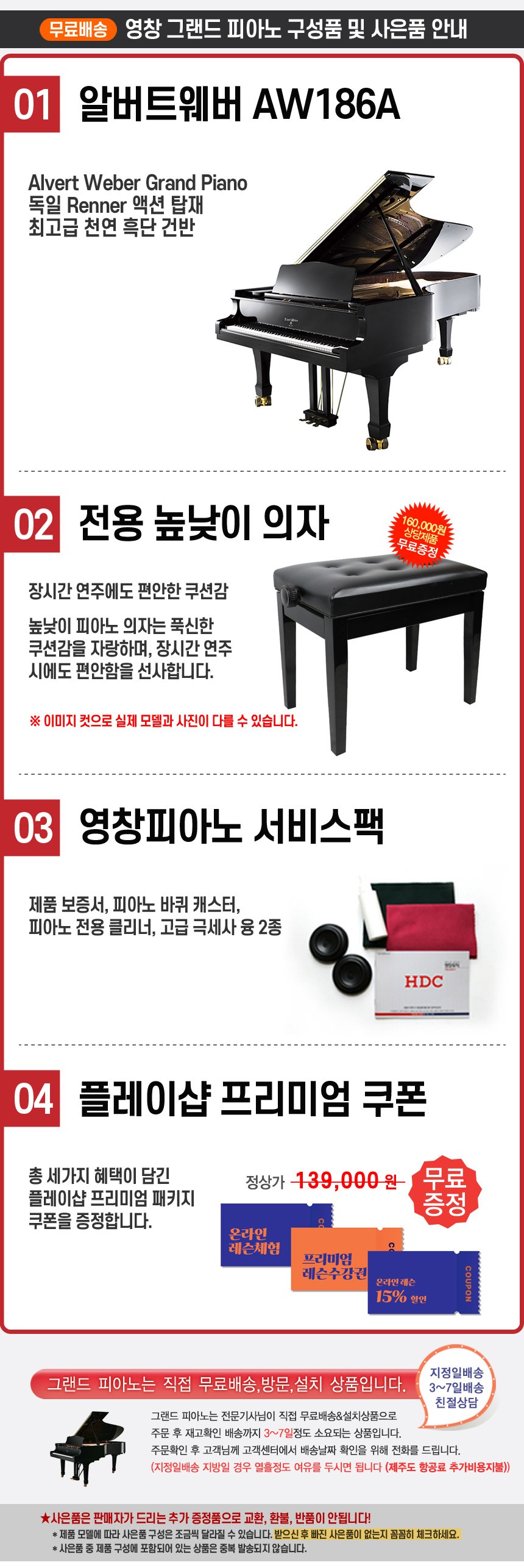 (현대Hmall)영창알버트웨버 그랜드피아노 Alvert Weber Grand Piano AW186A BP /블랙유광/독일 액션