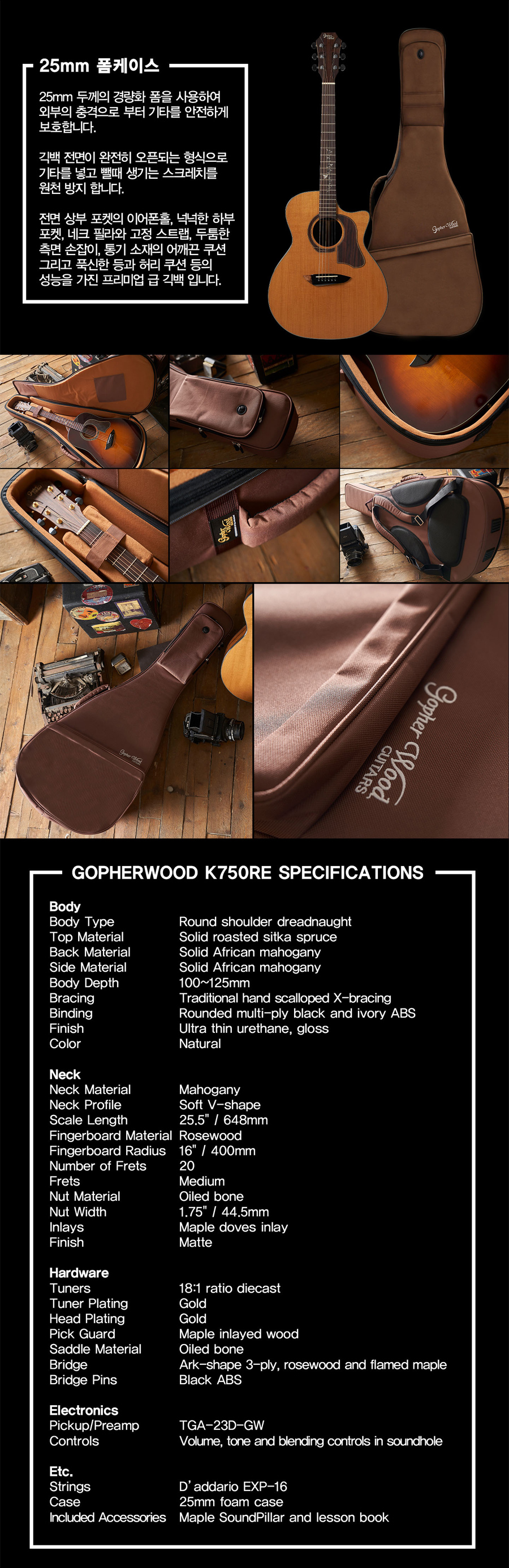 고퍼우드 K750RE 통기타 픽업장착 풀패키지 국내생산 K-750RE
