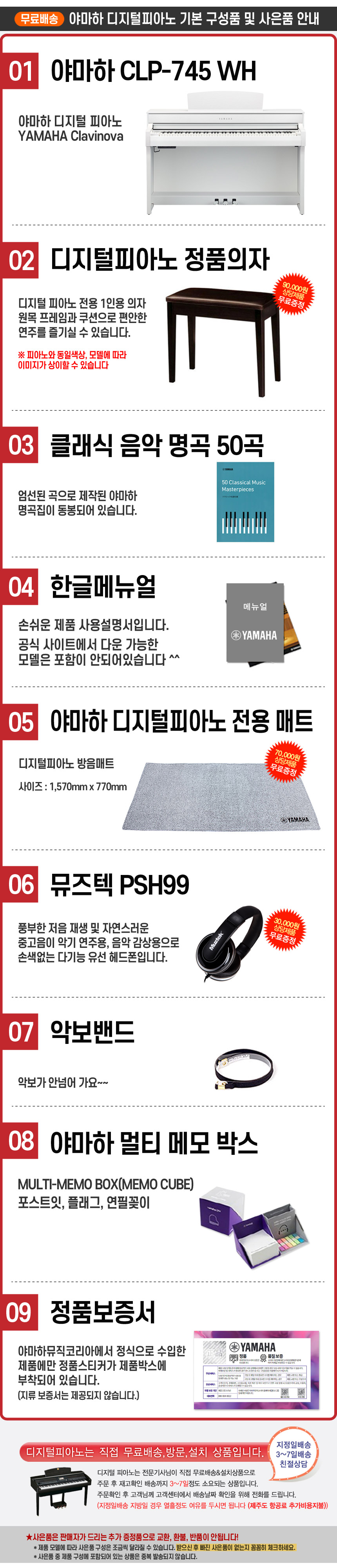(현대Hmall)야마하 CLP-745 WH 디지털피아노 전국무료방문설치
