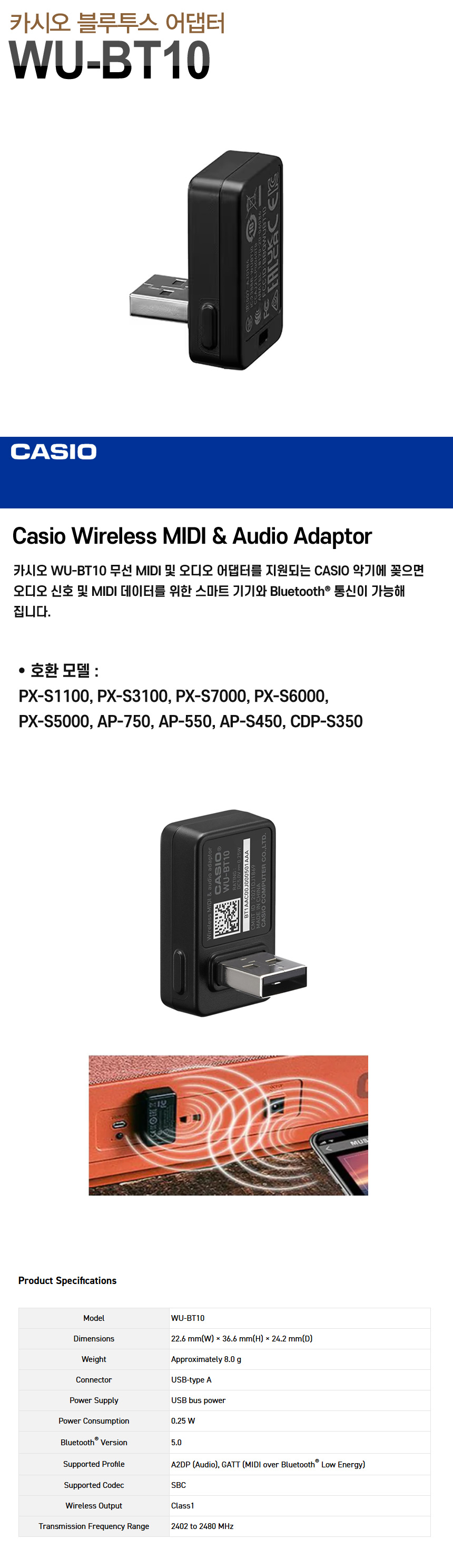 (현대Hmall)카시오 WU-BT10 블루투스 어댑터 / Casio Wireless Adaptor / 무선 미디 오디오 어댑터