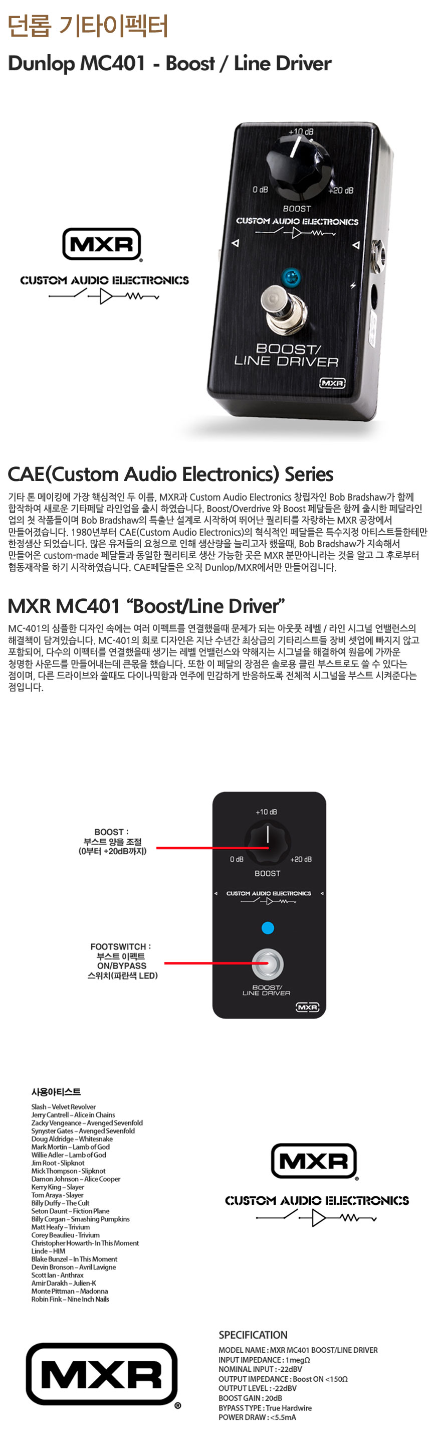 (현대Hmall)던롭 MC401 기타이펙터 /Dunlop Guitar Effector부스트 라인드라이버/Boost/Line Driver/