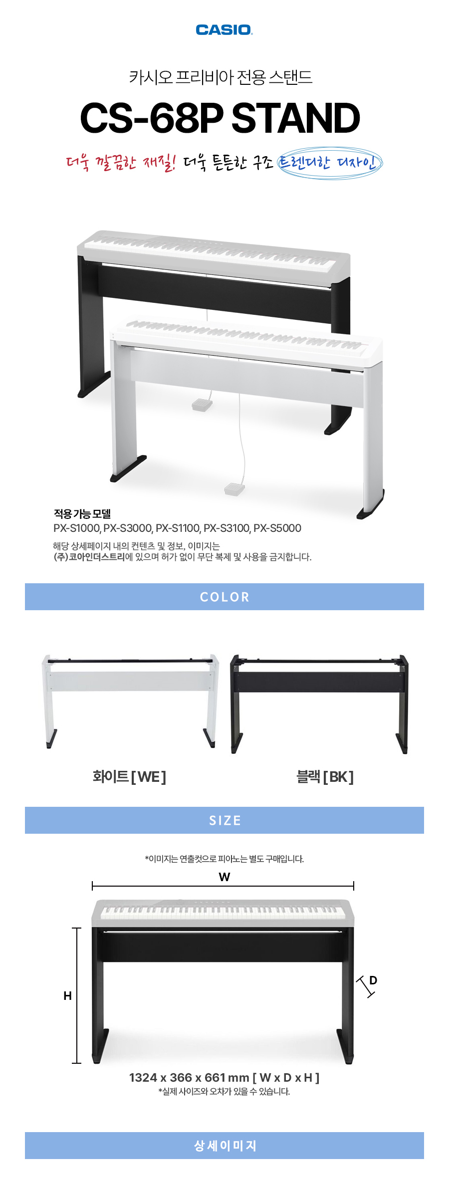 카시오 전자 디지털피아노 PX-S 시리즈 전용 우드 스탠드 CS-68P