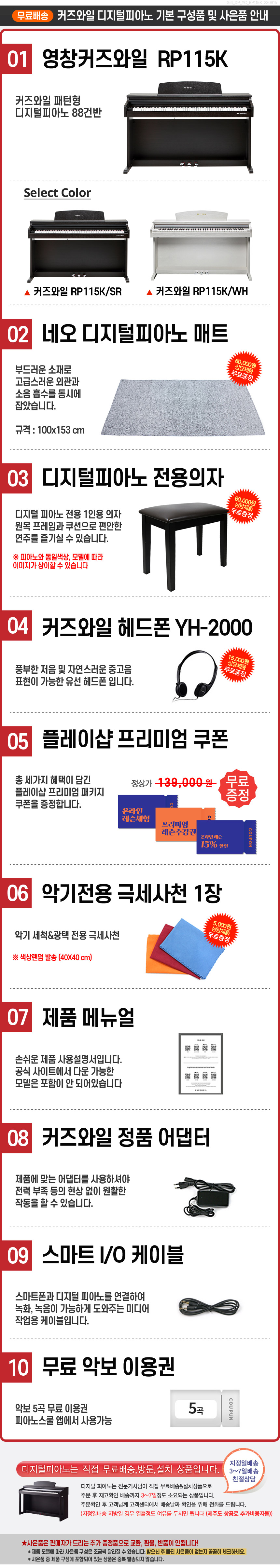 (현대Hmall)커즈와일 RP115K 디지털피아노 /영창뮤직 패턴형 88건반 +풀옵션