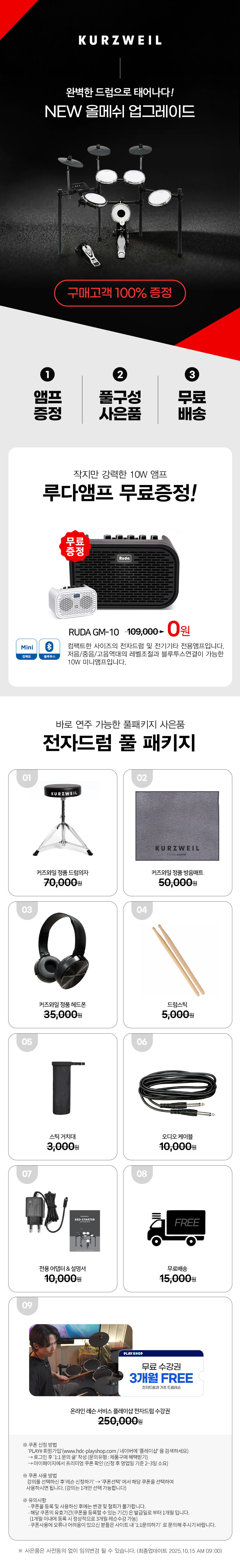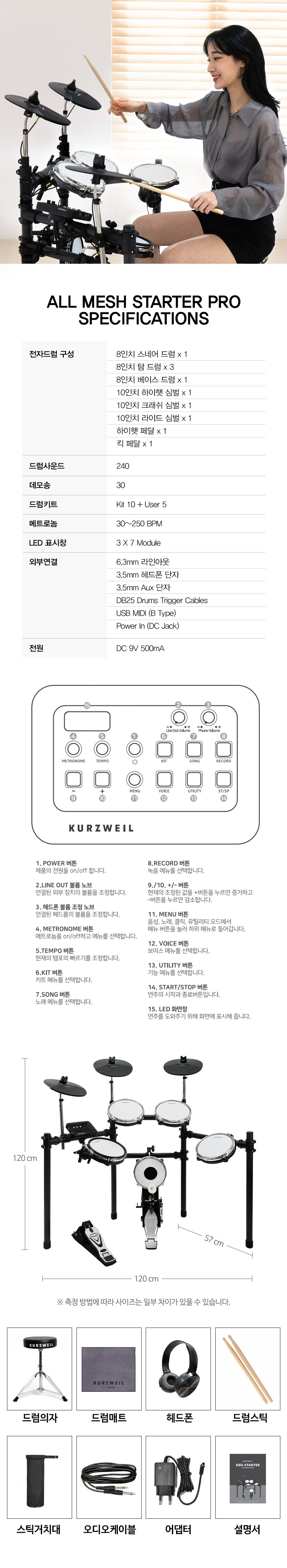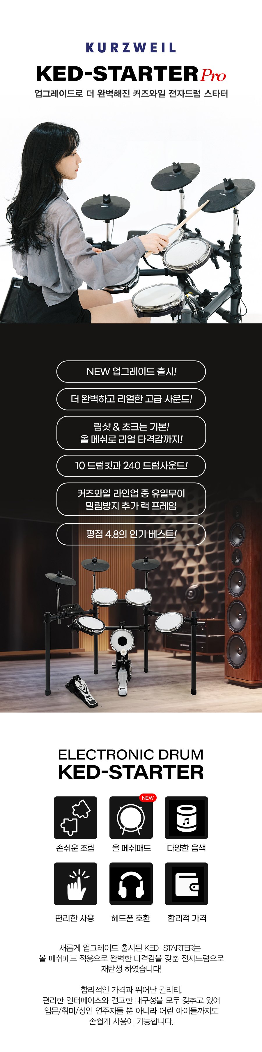 영창 커즈와일 전자드럼 KED-STARTER 올메쉬 스타터 프로 앰프포함 풀패키지