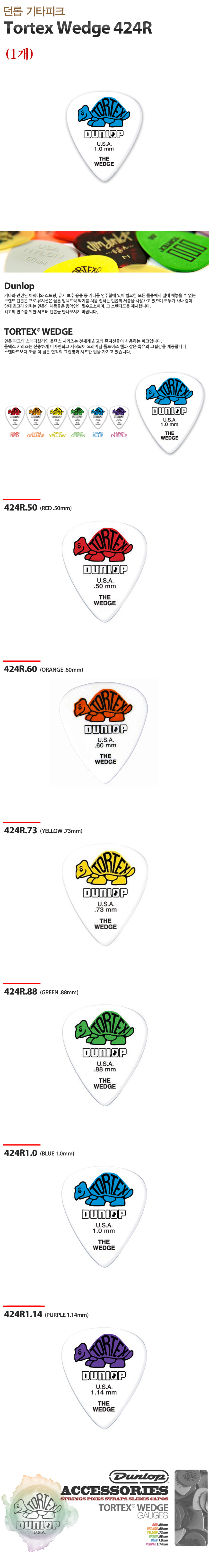 (현대Hmall)던롭기타피크 Dunlop Guitar Picks Tortex Wedge 424R (1개) 톨텍스 웨지/일렉기타/통기