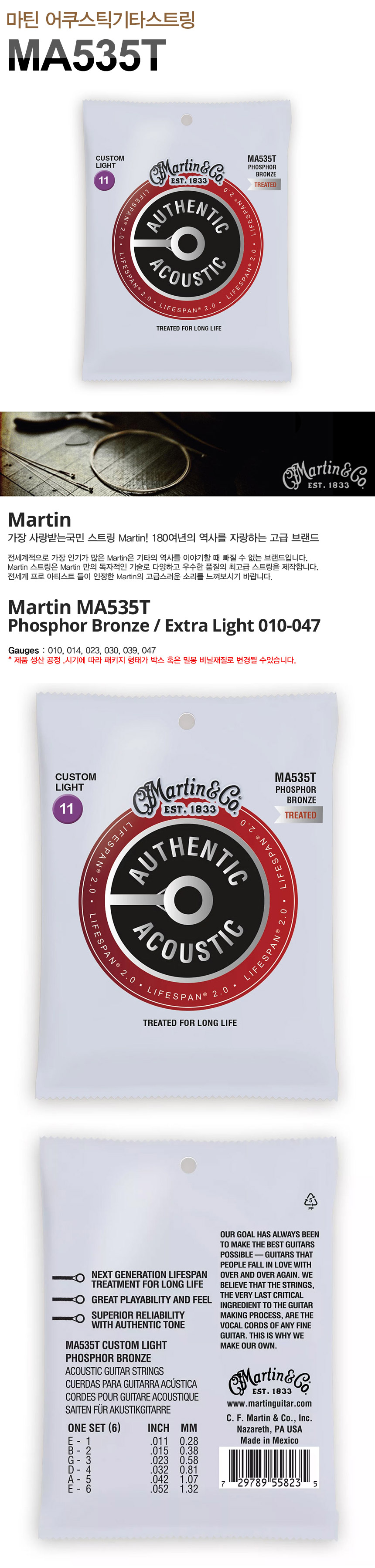 (현대Hmall)마틴어쿠스틱기타스트링 Martin MA535T Phosphor Bronze / Custom Light 011-052 / 통기