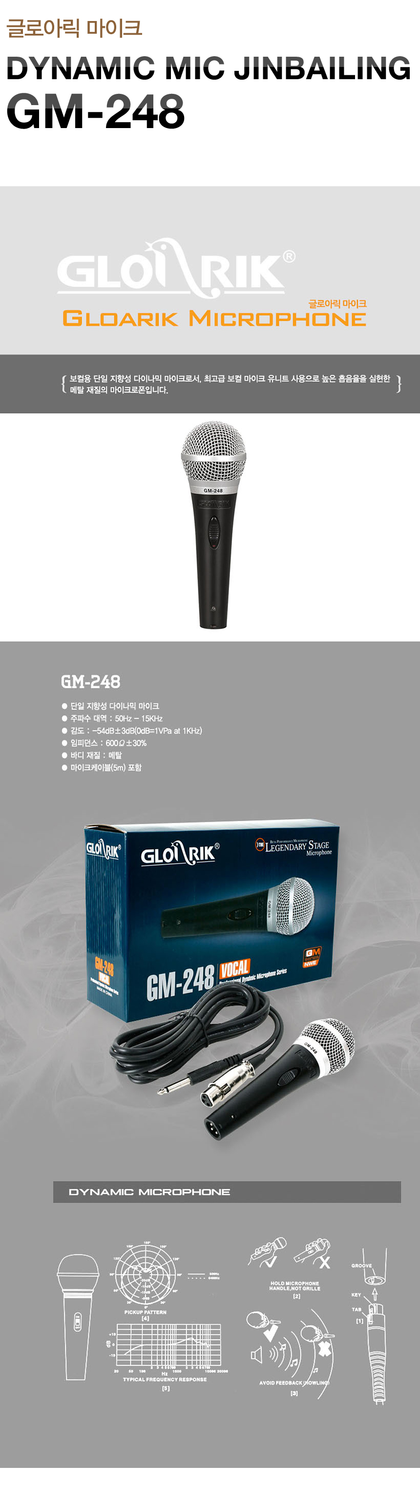(현대Hmall)글로아릭마이크 Gloarik DYNAMIC MIC JINBAILING GM-248 / GM248 +5m케이블 / 유선마이