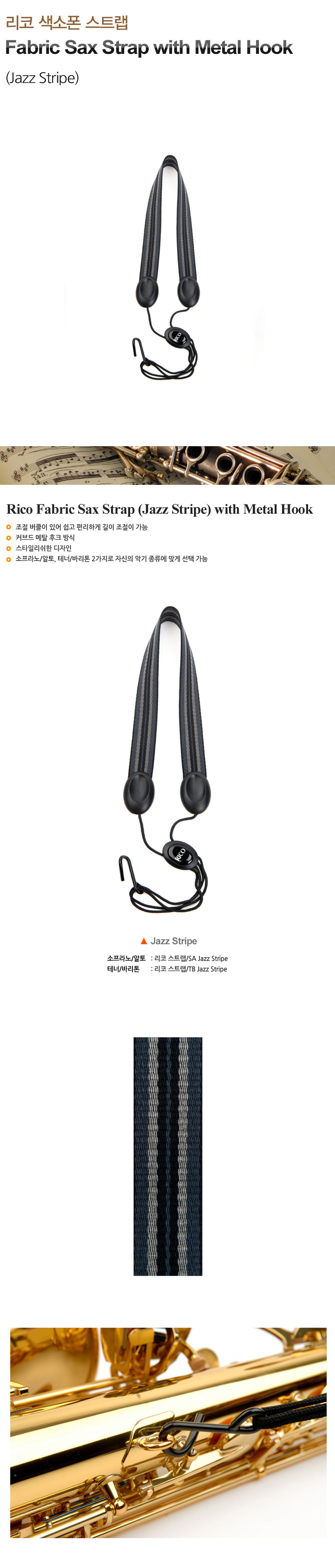 (현대Hmall)리코색소폰스트랩 Rico Fabric Sax Strap (Jazz Stripe) with Metal Hook 소프라노/알토