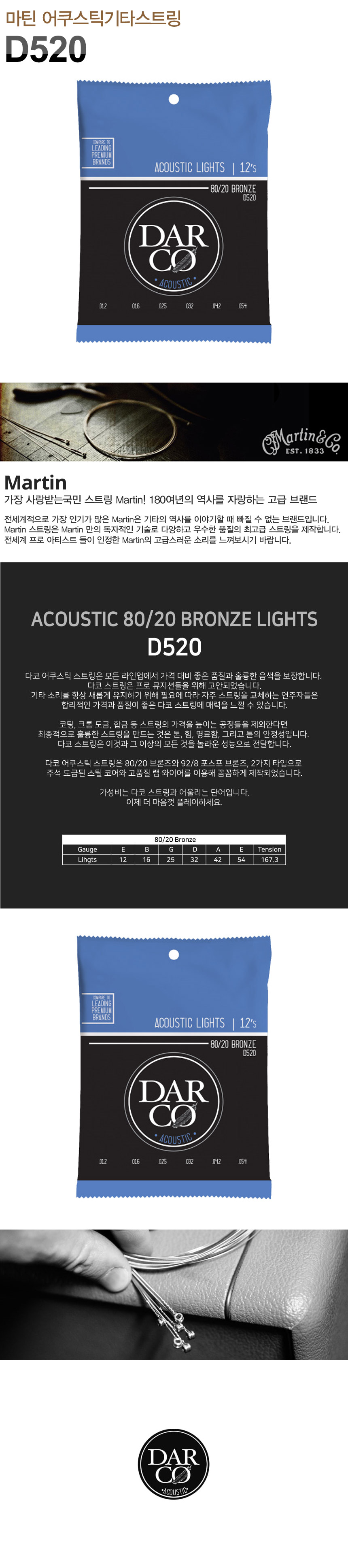 (현대Hmall)마틴어쿠스틱기타스트링 Martin D520 Darco / 어쿠스틱 스트링 / 80/20 Bronze / Light