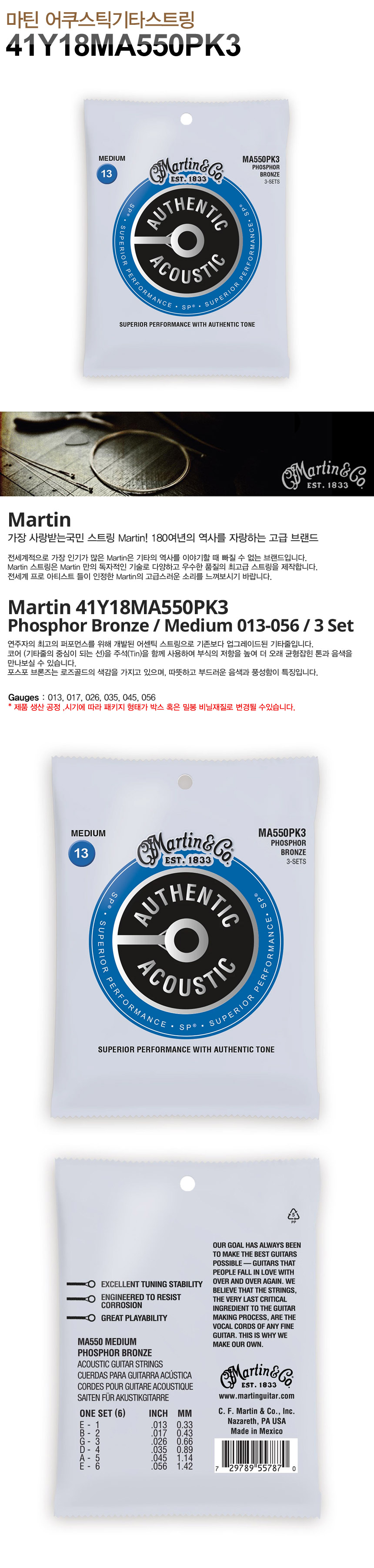 (현대Hmall)마틴어쿠스틱기타스트링 Martin 41Y18MA550PK3 80/20 Phosphor Bronze/Medium 013-056/