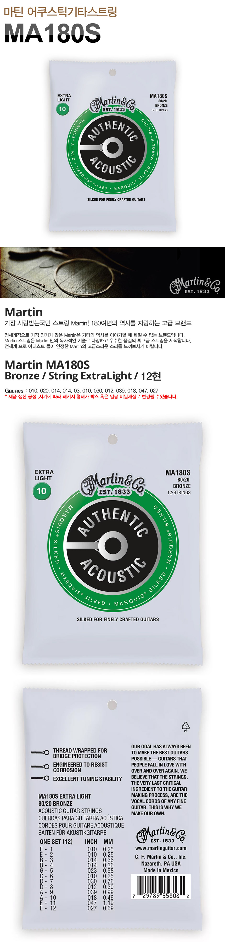 (현대Hmall)마틴어쿠스틱기타스트링 Martin MA180S 80/20 Bronze / String ExtraLight / 12현 정품